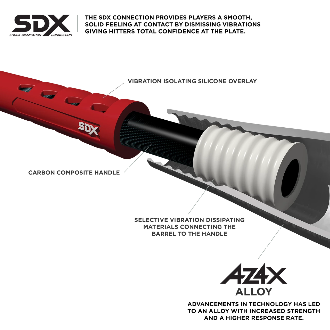 - SDX: Shock Dissipation Connection Technology dismisses vibrations, providing a smooth, solid feeling at contact